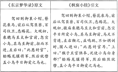 两段文字相对照,元刻《东京梦华录》本可谓丢三落四,像“徽庙”这样关键的主语,竟然遗漏,其失之质使人由此一下子就可以得出《枫窗小牍》是接近宋《东京梦华录》本原貌的结论来。这不仅因为《枫窗小牍》系南宋刻本,更为主要的是从遣词造句方面则较之元刻《东京梦华录》本更合乎逻辑。将元刻《东京梦华录》本所遗与《枫窗小牍》所有相照,孰优孰劣,一目了然。