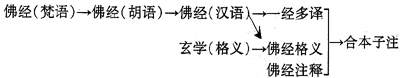 对这一问题的进一步研究当为陈寅恪先生,他以《比丘大戒二百六十事(三部合以二卷)》为例解释道:“其大字正文,母也。其夹注小字,子也。盖取别本之义同文异者,列入小注中,与大字正文互相配拟。即所谓‘以子从母’,‘事类相对’者也。”(《金明馆丛稿初编·支愍度学说考》,三联书店2001年6月版)今人程千帆先生也对合本子注予以阐释,他说:“子注之兴,盖由后汉以降,佛法西来,一经间有数译……故以一本为正文,为母;以他本为注文,为子;合而为一,以便研寻,于是有合本子注之体也。”(《程千帆全集》卷五《史通笺记》,河北教育出版社2000年9月版)他们都看到了这一现象,分析也基本相同。不过,陈寅恪先生和程千帆先生都只是把与“正本”相对的“他本”理解为“注”,其实,在佛经翻译的早期,就有人为晦涩难懂的译文作注解,如支谦注《了本生死经》、《安般守意》、《法镜》、《道树》等。前面说过,这些注文也是《大藏经》的组成要素,以小字附在正文之中,这也是“注”,是后世所说的真正的“注”。大字为正文,小字为注文,前者称为“本”,又叫做“母”,后者称为“子”。《合首楞严经记》也说“今以越所定者为母,护所出为子”(释僧祐《出三藏记集》序卷七),非常明白地交代出在综理旧经的过程中,何者为“母”,何者为“子”,以及分别“母”与“子”的意义。“合本”之目的,显然在于择优取精,僧祐还说:“若其偏执一经,则失兼通之功;广披其三,则文烦难究。余是以合两令相附,以明所出本,以兰所出为子,分章断句,使事类相从。”(释僧祐《出三藏记集》杂录卷第十二《合维摩诘经序》)合本子注概念的产生过程,可以用下图表示: