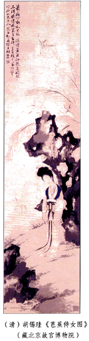胡锡珪《芭蕉仕女图》(见下图),今藏北京故宫博物院。