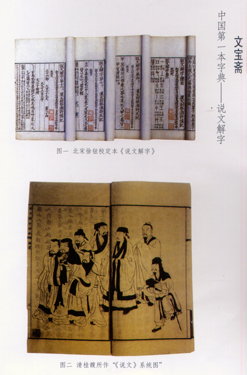 《说文解字》的作者是东汉人许慎。许慎(约8~约147),字叔重,汝南召陵(今河南郾城)人,著名经学家和文字学家。他从公元100年到121年坚持闭门创作,经过21年的艰苦努力,始将这部字典编写成功。《说文解字》问世后,成为汉字学的开山之作。后代学者在阐释经书时,往往都要引用《说文解字》。在唐代,朝廷规定《说文解字》是科举考试的必考科目。《说文解字》在流传过程中,屡经修改。北宋初年徐铉奉诏校定《说文解字》,对原书进行了重新的整理和修订。今传本就是徐铉所校定的(见图一)。